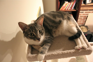 Dawn’s most favorite spot is at the top of the cat condo. The highest platform is officially hers. At first, Athena would climb the condo, and sometimes there were discussions about who owns which platform, but it soon became clear that Dawn ruled. Sometimes Athena would sleep on the next platform down, but I think Athena prefers the company of humans and humans don’t hang out on the condo.
