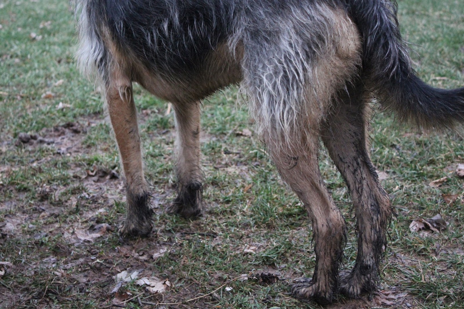 | You can see the mud all the way up Tucker’s legs. |