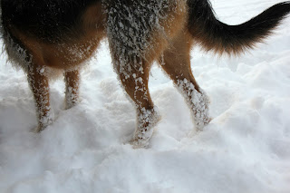 | Snow sticking to Tucker’s paws |