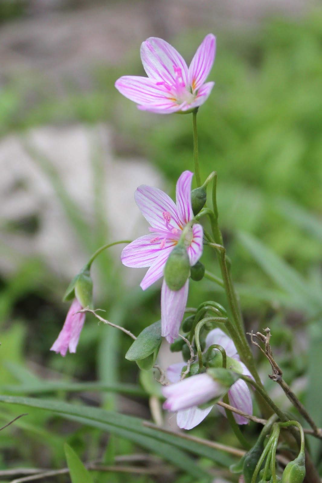 | A closer view of spring beauties. They seem to have a color range, with some featuring a showier, more vibrant pink. |