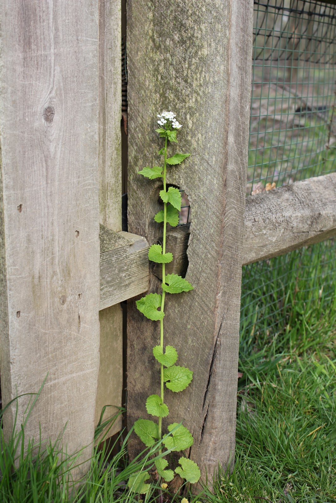 | To get to the wooded part of our property, you need to go through a gate. The deer fencing we’ve put up ensures that the plentiful deer get to stay in their neighborhood, and I get to have a perennial garden. A wildflower of some sort (surely others would call it a “weed” greets you at the edge of the gate. |