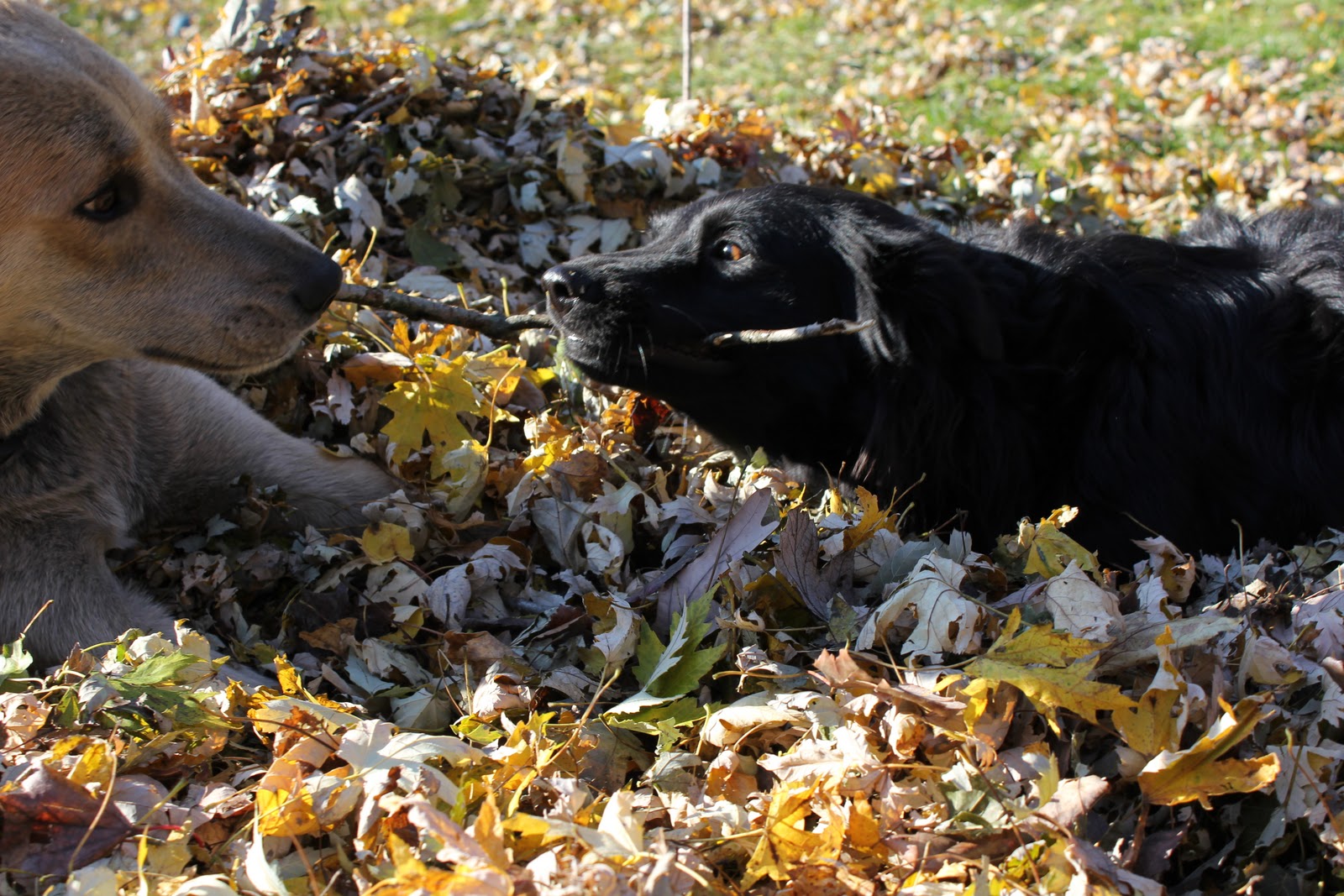 There’s a whole process, by the way, to finding the perfect stick. The recent fall snowstorm left our yard littered with humongous piles of branches just waiting for the right dog. Many of them still had leaves on them, which are, to some, extra special.