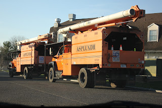 | I grew up in a Philadelphia suburb where Asplundh was a familiar tree service company. Their distinctive orange trucks were easily identifiable. It was a little weird seeing them here in New Jersey. |