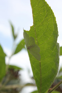 | This moth was tucked under a leaf, a very pale green, just about invisible. |